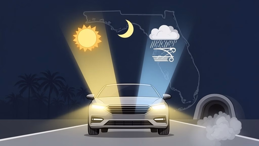 Anyone who's driven in Florida knows the weather can turn on a dime. One minute it's blue skies, the next you're in the middle of a torrential downpour or a dense patch of fog. These conditions demand more than just flipping on your lights at sunset; you have to know how to react to what the road throws at you.